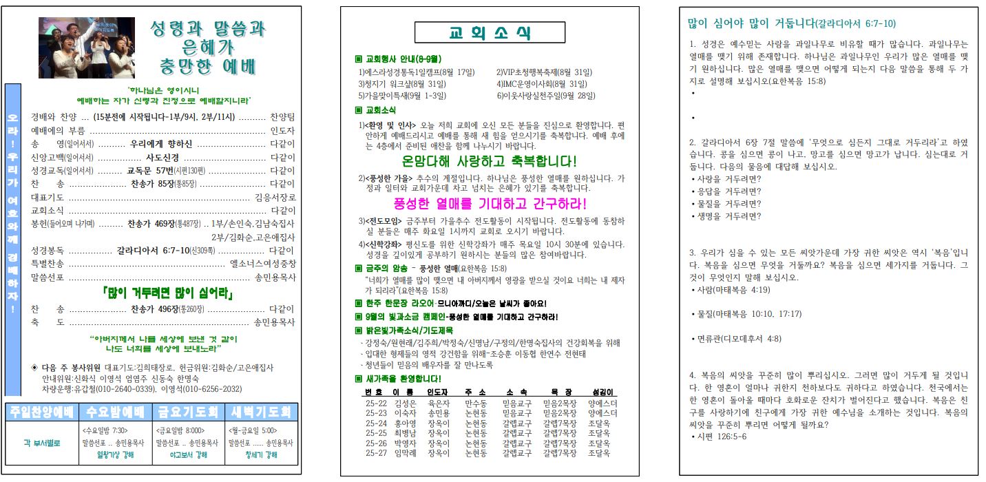 2025년 09월 07일 교회소식